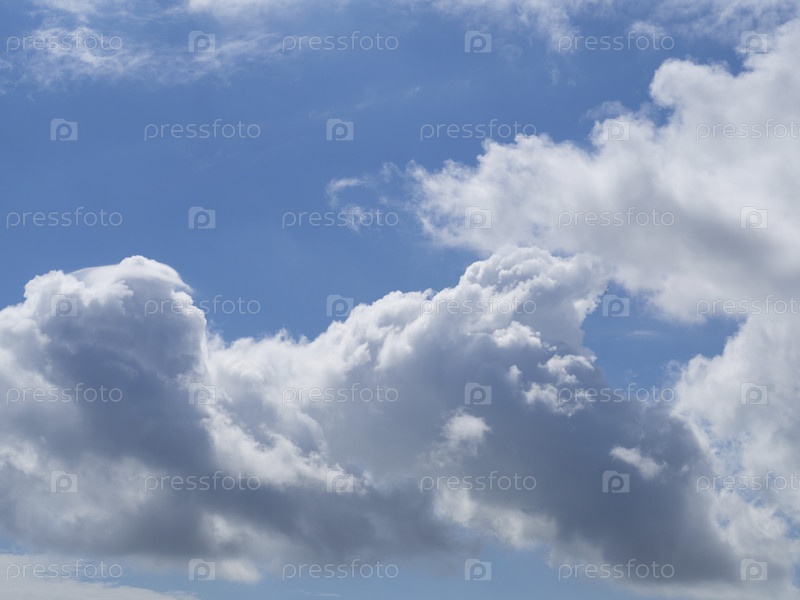 Облачное небо. Красивые загадочные пушистые облака в голубом небе. Кучевые облака и голубое небо