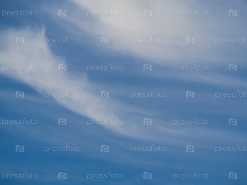 Легкие волнистые облака на голубом небе, мягкий фон неба. Фантастические нежные белые облака на фоне голубого неба, мягкий фокус