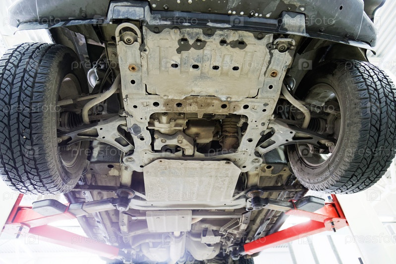 Старый автомобиль на подъемнике в сервисном центре