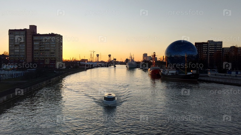 Закат с видом на музей "Мирового океана" в городе Калининград