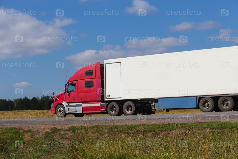 Большой полуприцеп движется по проселочной дороге
