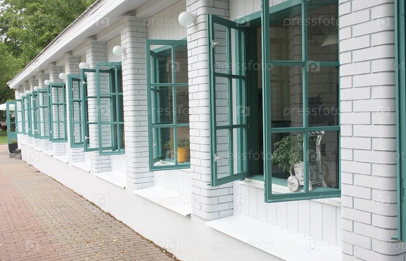 Кирпичная стена с открытыми окнами
