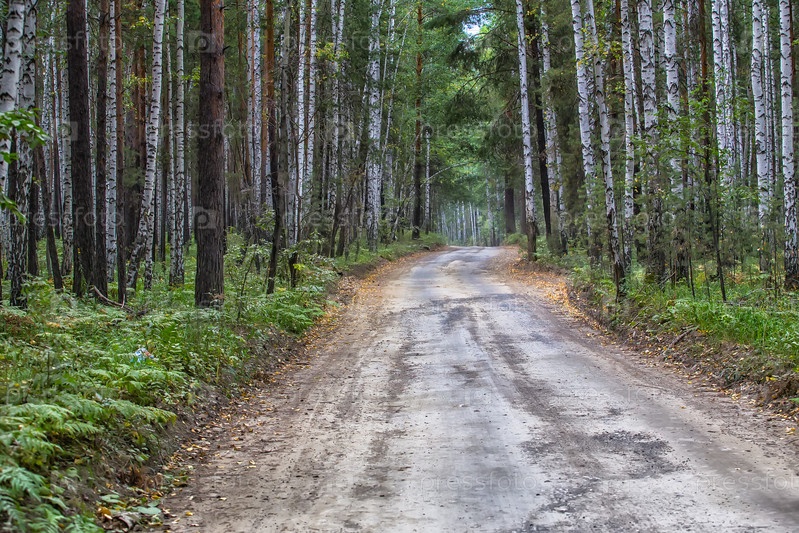Грунтовая дорога в березовом лесу