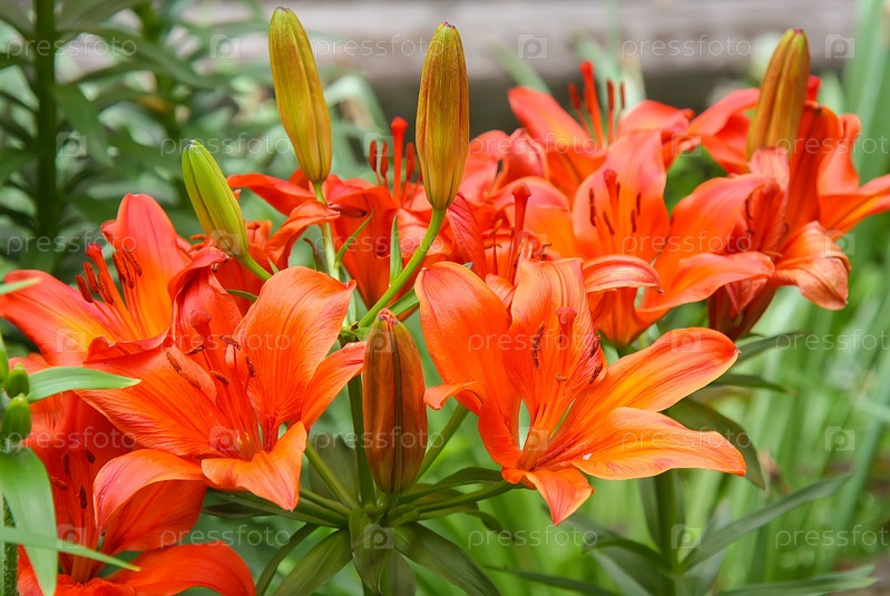 Пятнистые оранжевые лилии, растущие в саду
