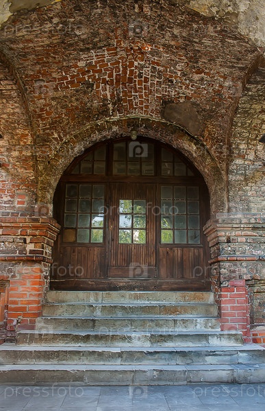 Фасад старинного кирпичного здания с аркой