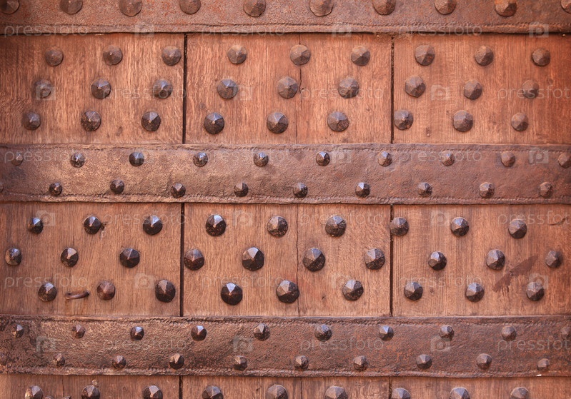 Старинная дубовая дверь с металлическими заклепками