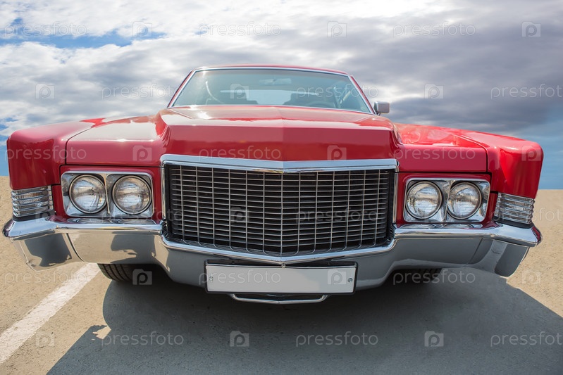 Классический старый американский автомобиль на шоссе