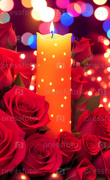Красивый праздничный фон со свечами и красными розами