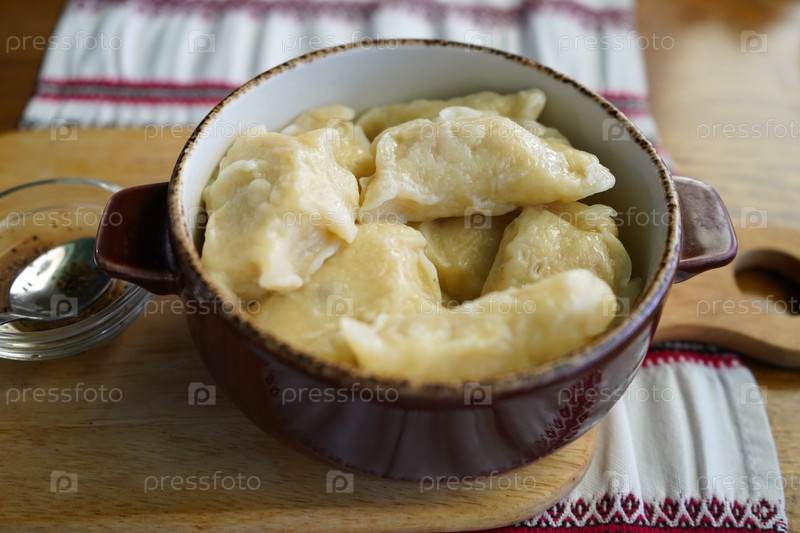 Вареники с картофелем в керамической посуде