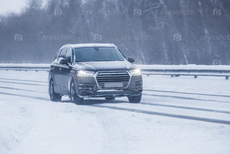 Автомобиль движется по проселочной дороге зимой