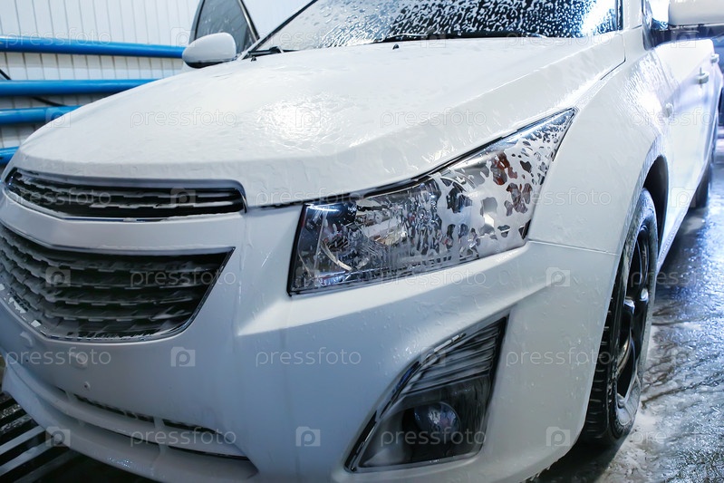 Машина покрыта пеной на автомойке