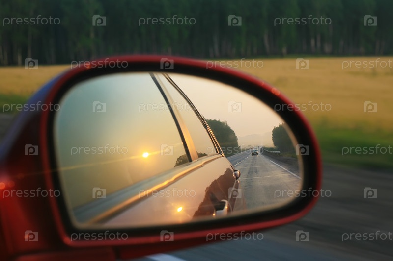 Отражение в зеркале движущейся машины
