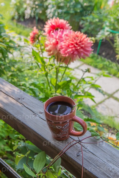 Утренний кофе в чашке на открытом воздухе