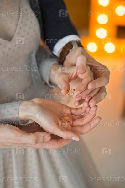 Жених и невеста обнимают свои обручальные кольца 2838