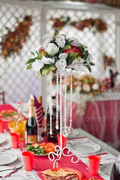 Букет на подставке среди свадебного стола 2815