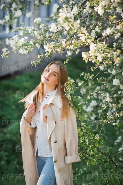 Портрет рыжеволосой красавицы на фоне цветущей сакуры 296