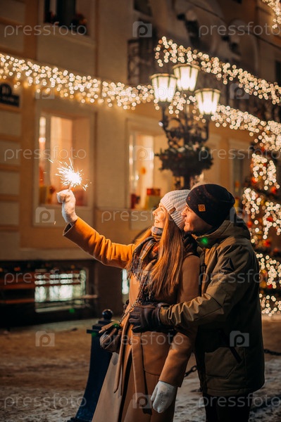 Большой портрет влюбленной пары на фоне Нового Года