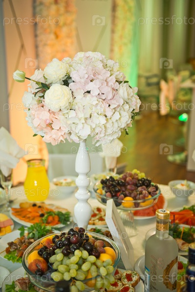Композиция из цветов на столе в торжественном зале 2639