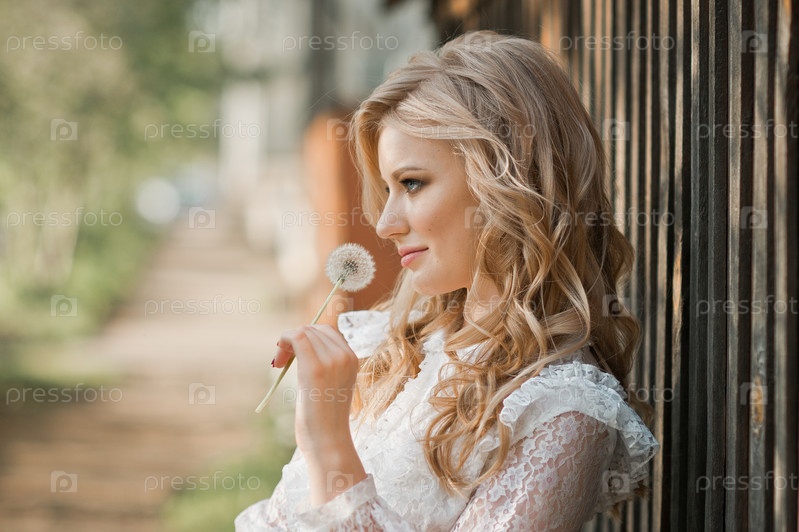 Летний большой портрет девушки у забора