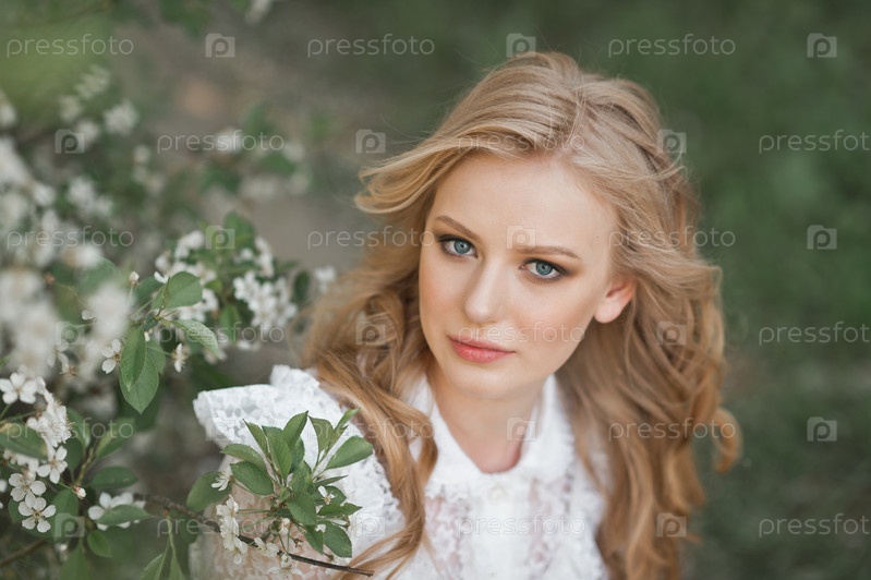 Нежное фото девушки со светлыми волосами в кружевном платье 2697