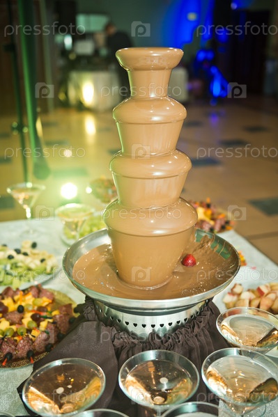 Шоколадный фонтан на свадебном банкете для гостей 2645