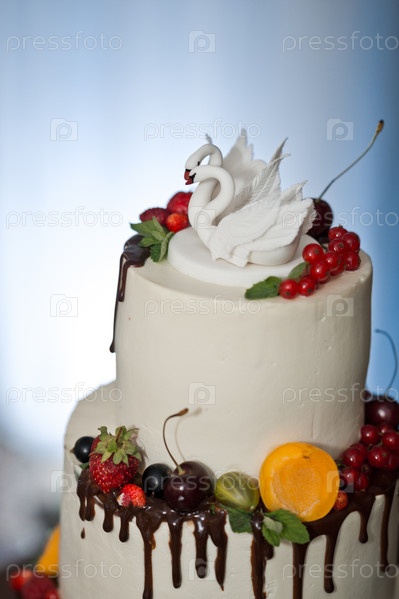 Огромный торт украшенный фруктами и ягодами на свадьбу 2774