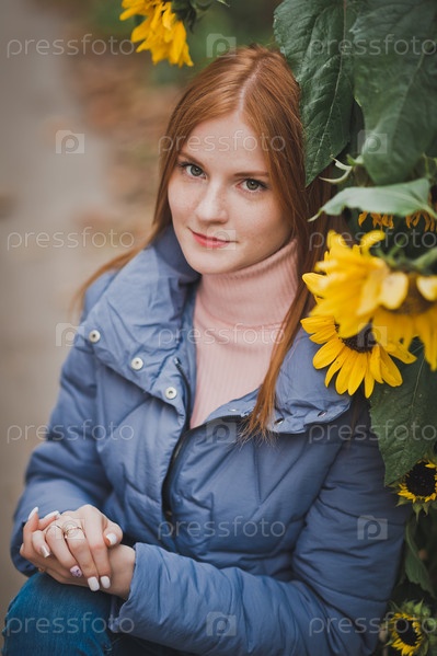 Девушка на фоне подсолнухов осенью 2753