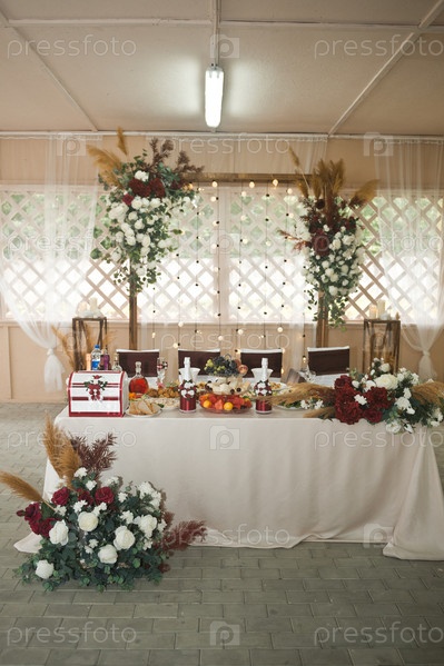 Свадебный зал красиво украшен цветами 3141
