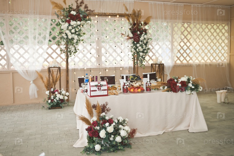 Свадебный зал красиво украшен цветами 3140