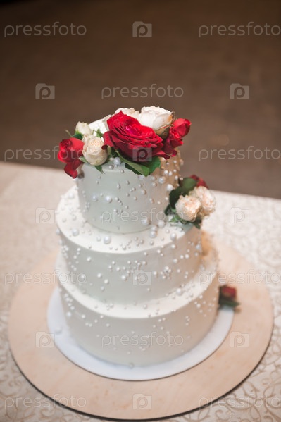 Трехъярусный торт с цветами наверху 3147