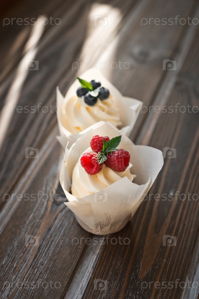 Два конуса кремового торта с ягодами 3302