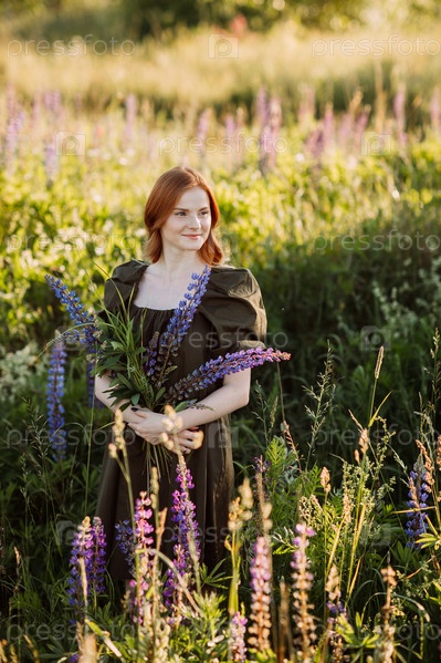 Портрет рыжеволосой девушки в зарослях люпина 3273