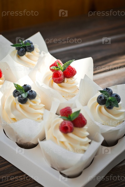 Шесть конусов кремового торта с ягодами 3301