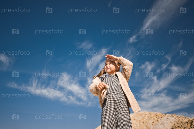 Маленькая девочка счастливо бежит по песку 3319