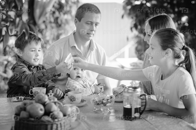 Черно-белые фотографии домашнего семейного чаепития 3468