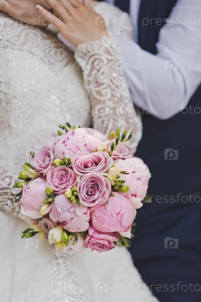 Свадебный букет невесты из розовых роз и пионов 2649