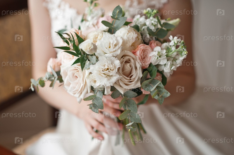 Свадебный букет невесты из роз и гвоздик в небрежном стиле 2655