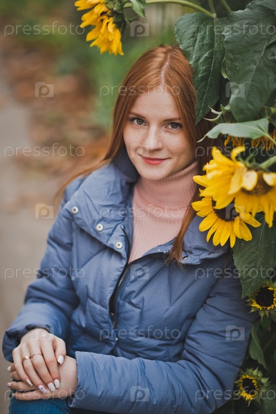 Девушка на фоне подсолнухов осенью 2754