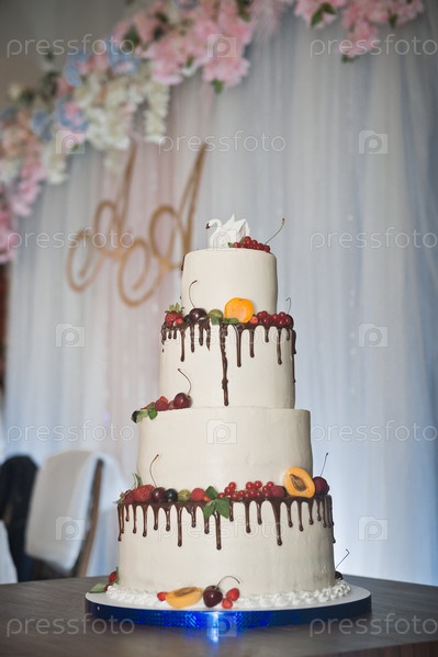 Огромный торт украшенный фруктами и ягодами на свадьбу 2775