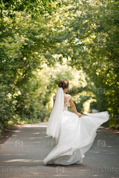 Невеста в шикарном платье крутится в туннеле из растений 3197