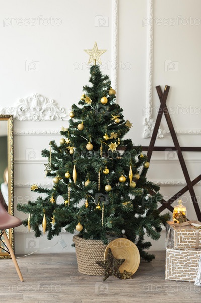 Интерьер новогодней комнаты с наряженной елкой 3707