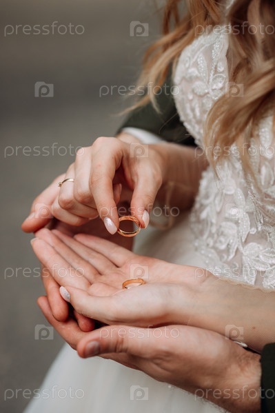 Обнимая руки молодоженов обручальными кольцами 4378