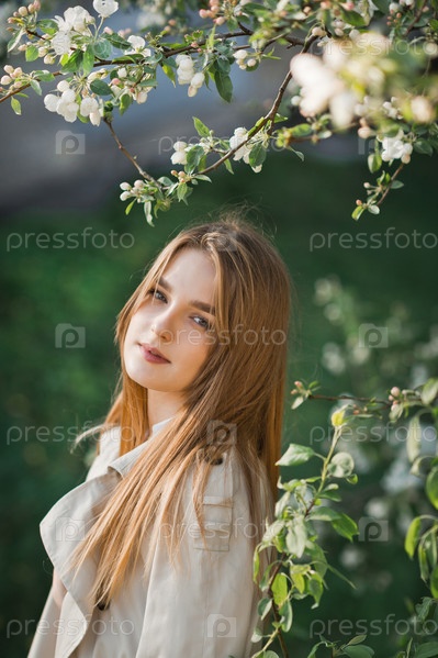 Портрет рыжеволосой красавицы на фоне цветущей сакуры 297
