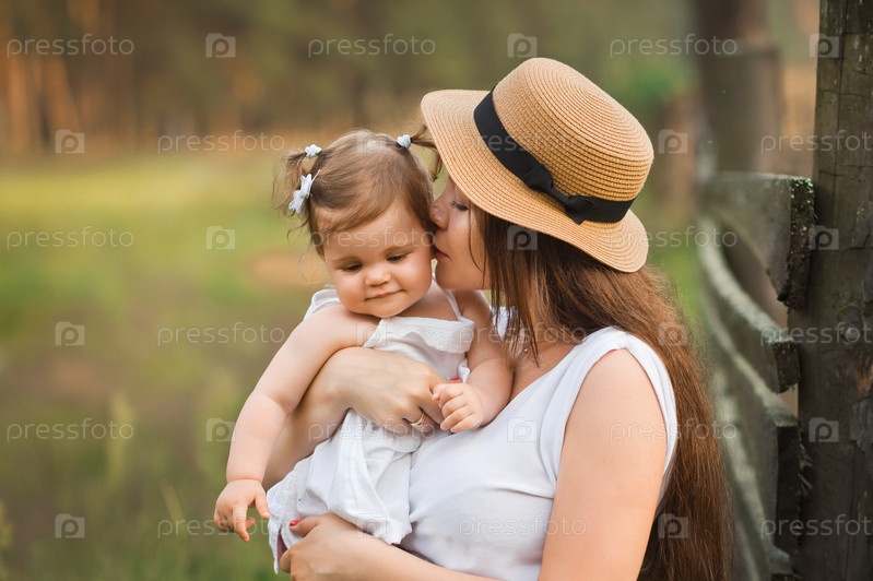 Портрет молодой матери на природе, играющей с ребенком 3003