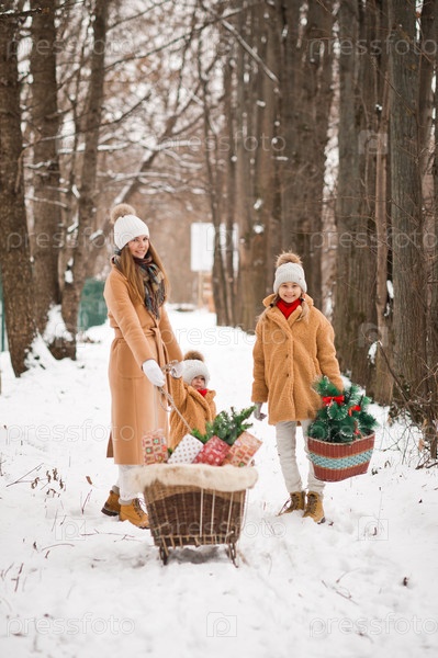Дети катаются на деревянных санях перед новогодними праздниками 3538