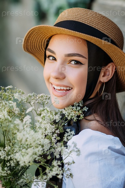 Большой портрет девушки в соломенной шляпе и с черными лентами 3585