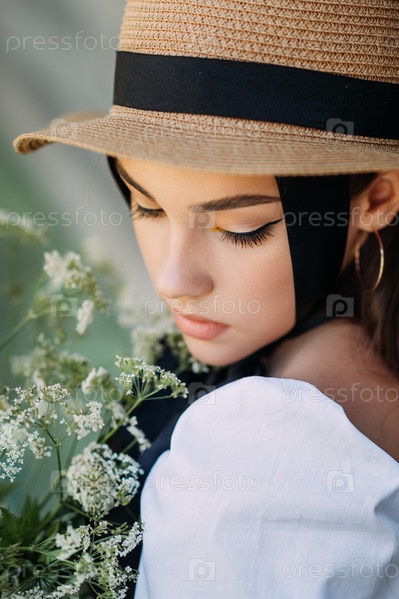Большой портрет девушки в соломенной шляпе и с черными лентами 3588
