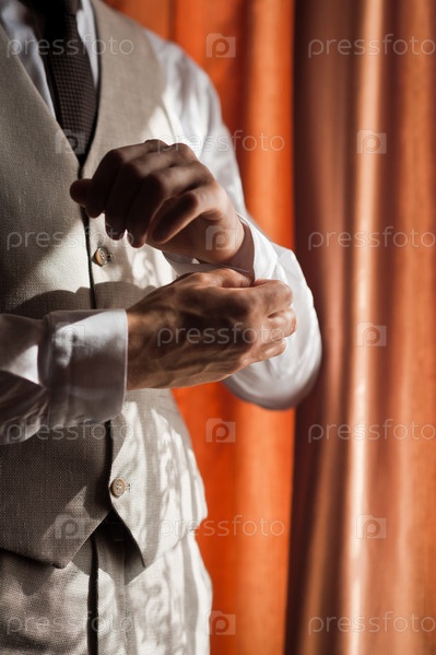 Красивое светотеневое фото мужских рук, поправляющих рукав 3853