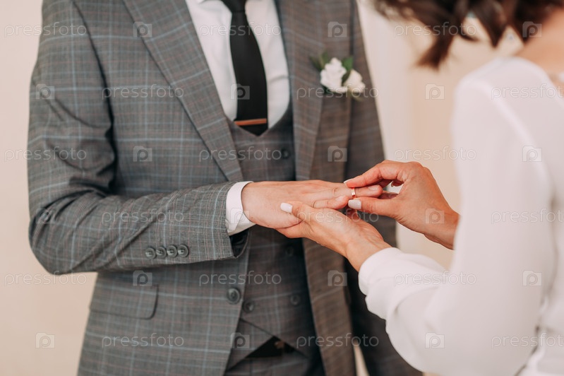 Руки молодоженов нежно касаются друг друга 3822