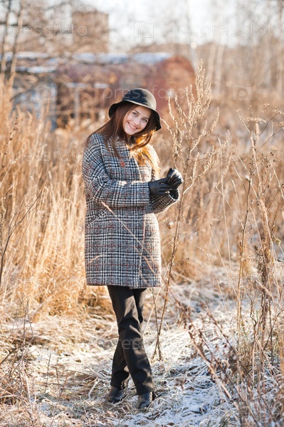 Портрет красивой девушки в камышах весной и в шляпке 3509